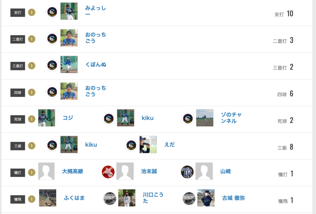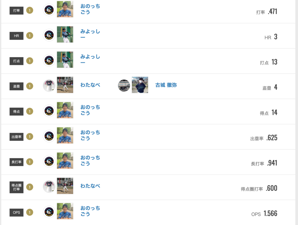 「熱血!アルバスカップ」打者成績